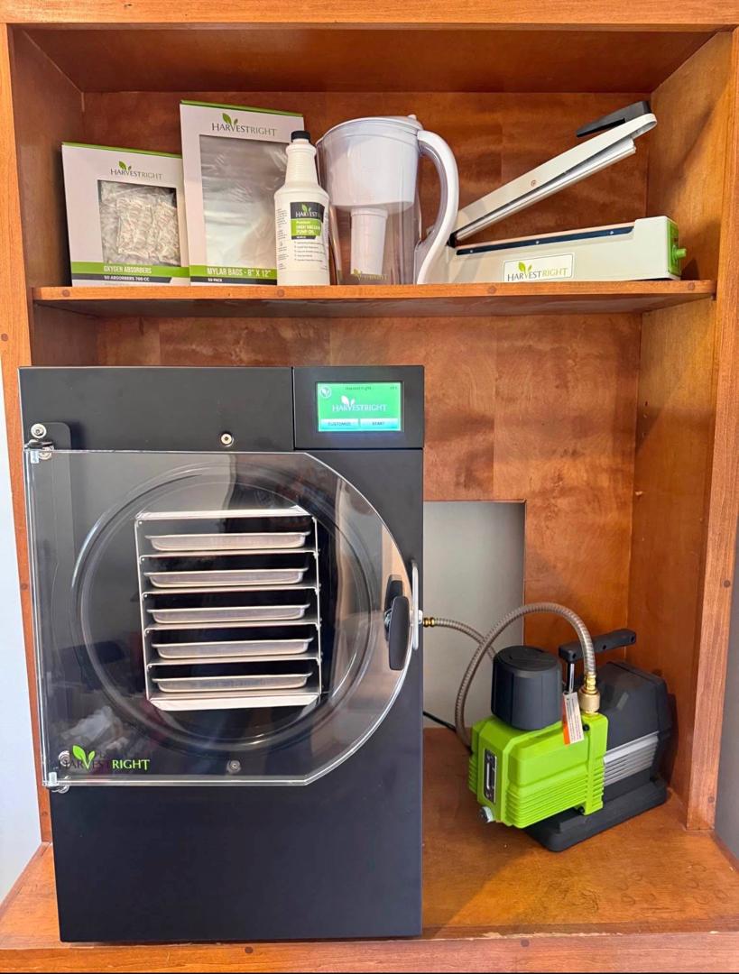 Full setup and Comes with 1 year warranty. Bought new in mid 2024. Rarely used. Works great. Comes with premier industrial pump, heat sealer, vacuum pump oil, oil filtering pitcher, Mylar bags and oxygen absorbers.